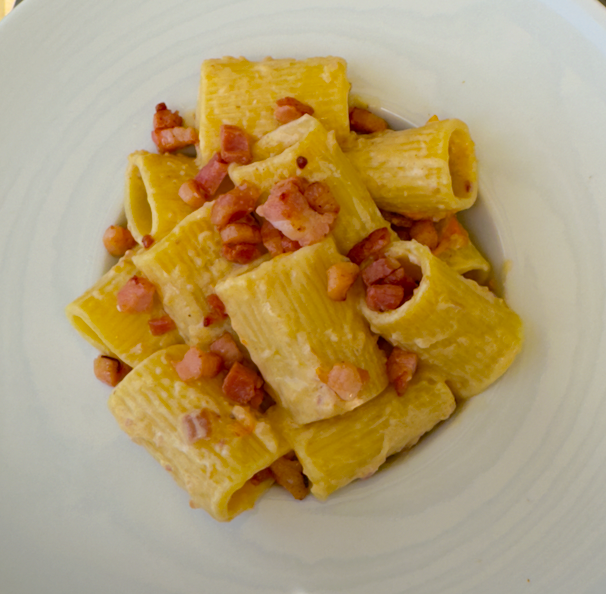 La ricetta dei paccheri rigati con crema di datterino giallo e pancetta combina la dolcezza dei pomodorini gialli con il sapore intenso della pancetta, arricchita da cipolla rossa di Tropea e aglio. Il tutto viene amalgamato con un filo d’olio e servito in un piatto spettacolare. Perfetta per un pasto gustoso e raffinato.
